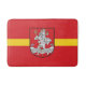 Tapis de bain avec le drapeau de Vilnius, capitale de la Lituanie ; drapeau rouge à rayures jaunes et armoiries avec deux lions dorés tenant un bouclier au centre