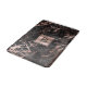 Cet élégant design présente un motif arrière - plan en marbre noir orné de veines dorées roses. Personnalisez-le avec votre initiale monogramme en police serif de style ancien noir sur un carré en métal brossé rose double bordures.