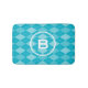 Élégant monogramme aqua bleu Jacquard bain motif mat tendance forme losange design avec personnalisation couleur arrière - plan ie bleu turquoise. Typographie classique pour la lettre initiale monogrammée. Créez votre propre intérieur de salle de bain classe avec ce modèle design. Initiales de nom personnalisées. Jolies idées de déco maison pour votre maison. Convient aux hommes et aux femmes. Tapis de salle de bain tendance rétro pour la maison ou l'hôtel.