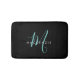 Élégant Noir Turquoise Script Monogramme Mat Bain. Un élégant monogramme de script turquoise combiné à une police blanche de san-serif propre donne un look contemporain.