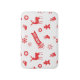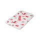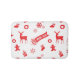 Un tapis de bain avec une répétition transparente et rouge des éléments de Noël - bas, gingerbreadman, flocons de neige, rennes, ornements de Noël, bougies, sapin de Noël, et les mots "Joyeux Noël" - en illustration.