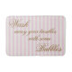 Un tapis de bain élégant avec des rayures de rose de sucrerie et citation en manuscrit de fantaisie pour toutes salles de bains modernes.