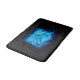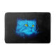 Un visage de chat bleu fractalisé avec des yeux jaunes étonnants contre un arrière - plan noir.