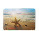 La belle plage de coucher du soleil avec une étoile de mer dans apparemment un geste de "accueil" ornent ce tapis de bain personnalisable de maison de plage. Perfectionnez pour votre côtier/océan/décor nautique de maison de thème.