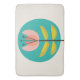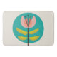 Un design d'art abstrait des années 1950 avec une fleur rose saumon avec des feuilles verts chartreuse contre un soleil turquoise, fait dans le style moderne du milieu du siècle.