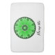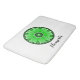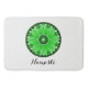 Tapis de bain blanc avec imprimé mandala de fleurs de lotus spirituelles fleuris vert et texte personnalisé Namaste. Décor de bain correspondant disponible au ScriptoGraphic Design Store.