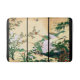 La peinture japonaise fine vintage magnifique d'art d'écran du deuil a plongé des oiseaux et pâlit - les fleurs de rose rose et rouge avec des nuages et une cascade/courant est sur ce conseil sec d'effacement. L'image est public domain dû à copyright expiré.