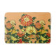 Tapis de bain dans une impression de bordé de chrysanthèmes et de feuilles, dans les nuances d'orange profond et de jaune doré - art numérique basé sur une illustration japonaise vintage