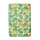 Ce tapis de bain présentant des formes géométriques rétro modernes du milieu du XXe siècle en vert menthe, vert citron, orange et jaune, c'est un superbe tapis de bain pour ceux qui aiment les designs minimalistes mod