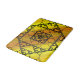 Trois styles de fractales dessinées à la main, y compris les triangles Sierpinski, les joints apolloniens et un design carré à thème similaire, composent les couches de ce mandala géométrique, superposées sur un dégradé jaune et orange vif.