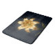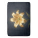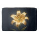 Golden lily flower in full bloom, luminous metallic gold petals with soft gradient highlights. Delicate natural detailing, dark moody background for dramatic contrast.