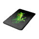 Une grenouille verte fractalized avec les yeux oranges ardents sur un fond noir.