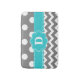 Montrez votre style d'une manière d'amusement avec ce tapis de bain gris et turquoise de monogramme de chevron et de pois.