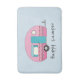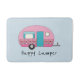 Illustration RV rose avec texte "Happy Camper" sur arrière - plan bleu clair