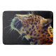 Ce tapis de bain a un jaguar représenté dessus.