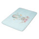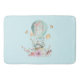 Un tapis de bain avec une charmante illustration d'un petit lapin qui roule dans une montgolfière ornée d'un joli ruban rose, accompagné de fleurs et de papillons. Un arrière - plan bleu pastel lui donne une atmosphère de rêve vintage.