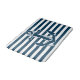 Matelas nautique avec ancre et rayures blanches et bleues. Il est de taille moyenne et mesure 20 pouces par 30 pouces.