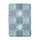 Un motif de carrés turquoise orageux, décoré d'un voilier et d'une ancre blancs, et de carrés bleu marine, accentués de chevrons et de vagues bleu pâle, est accentué par la couture blanche pour créer une atmosphère nautique classique.