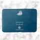 Elégante baignoire bleu foncé et blanche sur le thème nautique. Personnalisez votre nom dans le modèle. Décoré d'un voilier glissant par, et d'une icône de navigation, ce tapis de bain ajoutera une élégance décontractée à votre salle de bain!