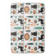 Motif moderne du milieu du siècle avec chats noirs. abstraits turquoise et orange arbres feuille plantes.