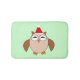 Ce somptueux tapis de bain présente un drôle de dessin d'une chouette de Noël aux yeux somnolents, un petit bec orange et de mignons petits pieds oranges. Le hibou est brun avec un ventre crème et porte un chapeau de Père Noël rouge et blanc prêt pour Noël.