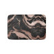 This trendy bath mat features an elegant black and rose gold marble pattern.
