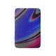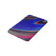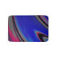 Ce tapis de bain abstrait présente un design fractal tourbillonnant en bleu foncé, magenta, noir et gris.