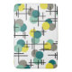 Une ère atomique rétro inspiré motif avec des cercles moléculaires turquoises, turquoise, gris et jaune, ainsi que des lignes audacieuses de style moderne du milieu du siècle.
