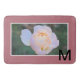 Monogram initial in black. Pastel pink yellow rose flower against white geometric frrame. Pretty rose gold color background. Original Photography and Design © TamiraZDesigns.