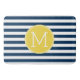 Tapis De Bain Monogramme jaune Motif rayé blanc et marine