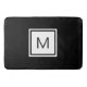 Une lettre noire se trouve sur un blanc entouré d'une double bordure blanche et noire. Ce tapis de bain noir et blanc peut être personnalisé avec votre monogramme/initial.