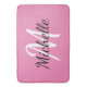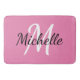 Tapis de bain avec un arrière - plan rose et blanc monogramme personnalisé première initiale et prénom.