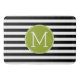 Tapis De Bain Monogramme vert Motif rayé noir et blanc