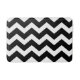 Un tapis de bain motif moderne en chevron noir et blanc.