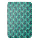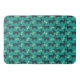 Un tapis de bain conçu avec un motif extensible avec un mignon chien souriant avec des oreilles disgracieuses et un os de chien. Arrière - plan vert.