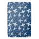 Beau tapis bleu marine imprimé avec un motif d'avions blancs. Le tapis de bain parfait pour les pilotes et les amateurs d'aviation
