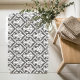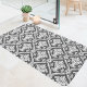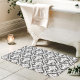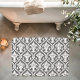 Tapis De Bain Motif de Damas baroque gris foncé et blanc