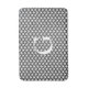 Un tapis de bain de motif d'art déco basé sur le motif de vague traditionnel souvent vu en textiles japonais, dans le noir, blanc et gris, avec le monogramme