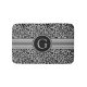 Tapis de bain Empreinte de léopard. Motif de taches en argent et léopard noir avec un modèle monogramme personnalisable.