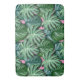 Un tapis de bain aux allures estivales. Arrière - plan est un motif de feuilles philodendrons exotiques tropicaux en vert. Image numérique peinte à la main. Un soupçon de rose dans l'arrière - plan.