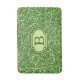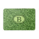 Tapis de bain moderne rétro avec un monogramme personnalisé dans un semi-abstrait, partout motif de roses et de bourgeons - mélange art numérique médiatique en chaux clair / chartreuse vert et vert pin profond