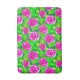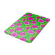 Tapis de bain dans un motif de rose fuchsia profonde, aquarelle, roses avec feuilles dans les tons vert émeraude