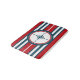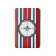 Design nautique avec décoration de boussole en forme ronde sur arrière - plan rayé rouge, bleu et blanc