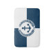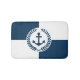 Nautical themed design with anchor and laurel wreath decoration over blue and white geometric background