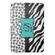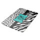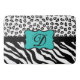Ajoutez du style à votre salle de bain, cuisine ou autre pièce avec ce tapis personnalisé avec votre monogramme initial. Ce élégant noir et blanc avec zèbre gris ou gris et motif empreinte de léopard fera un accent tendance à la décoration de votre maison. Un emblème bleu turquoise turquoise ajoute une pop de couleur et crée une zone de personnalisation avec votre monogramme. Les rayures colorées de zèbre et les peaux de léopard ou de guépard pour le design graphique sont l'une des tendances artistiques et design les plus chaudes, et est extrêmement populaire de la mode à la décoration maison. Ce tapis est entièrement personnalisable. Allez-y avec ces modèles de peaux sauvages !