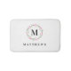 Le tapis de bain avec la lettre de monogramme, l'endroit pour le nom et la fleur tressent.