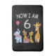 Joyeux 6e anniversaire. Funny and lovely Kids Birthday design with a cute Elephant, two ferrets and a girafe celebrating your birthday at the zoo.