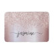 Tapis de salle de bain personnalisé à motif glamour moderne et girly avec monogramme ou signature en écriture personnalisée métallisé rose gold. Ce design présente votre prénom dans un style d'écriture manuscrite avec une queue en forme de fioriture, une calligraphie (ou typographie) de signature sur un fond rose blush avec un effet métallisé rose gold et une bordure scintillante à paillettes glamour. Ce sont des produits faciles à personnaliser. Cadeau de pendaison de crémaillère élégant et féminin, également idéal pour un anniversaire, un mariage, une fête des 16 ans, une douche de mariée, une soirée entre filles et c'est pour la fille qui aime les choses uniques et scintillantes.
