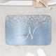 Personnalisez facilement ce design chic et tendance de natte de bain avec une jolie parties scintillant brillante en argent sur un arrière - plan métallique brossé bleu.