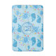Jolie baleines bleues motif avec l'eau colorée splash oh garçon avec des gouttes dans différentes couleurs et un badge bleu clair transparent ronde avec un nom monogramme. Personnalisez en changeant le nom et l'initiale ou la personnaliser pour ajouter votre touche personnelle.